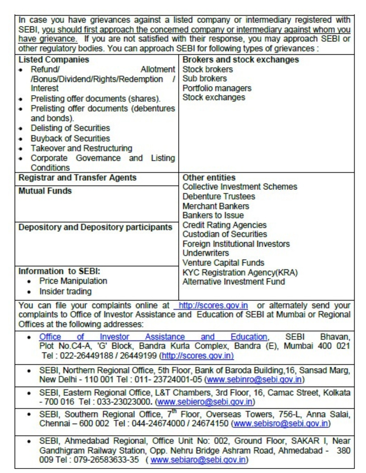 Central Depository Services (India) Limited | 1800-200-5533 | complaints@cdslindia.com |